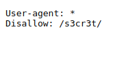Esto es una pista ya que existe un archivo robots.txt que le dice al motor de búsqueda de google a que sitios de su web puede acceder, visito robots.txt y encuentro el directorio /s3cr3t/