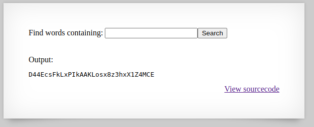 La página parece filtrar la palabra input en un diccionario interno. Al ver el código del programa vemos que hace el filtro mediante: grep -i {palabra} diccionario.txt, para saltarnos esto llegaría con poner || ls # para que cuando falle la primera instrucción se ejecute la segunda, que será el comando en cuestión y comentamos diccionario.txt.